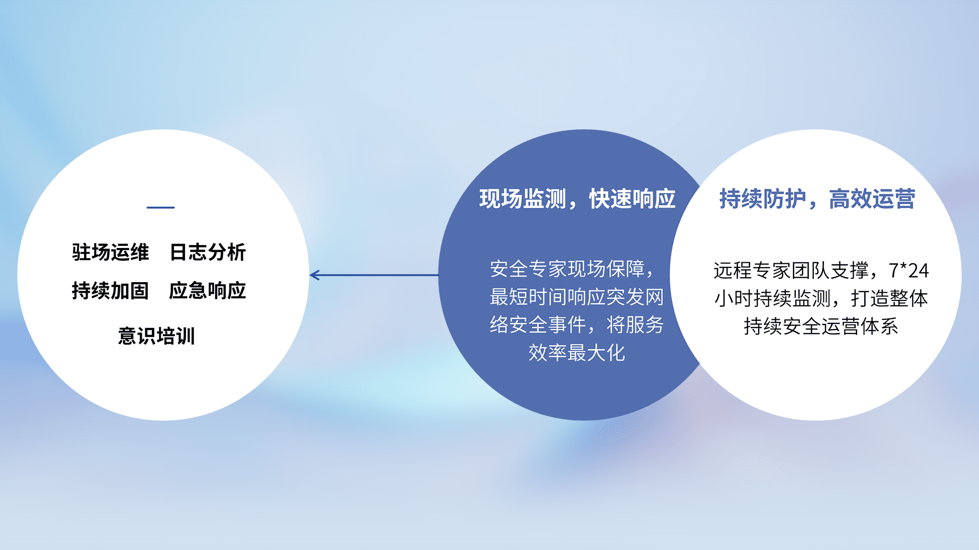 7X24小时持续监测安全事件,保持安全策略有效性,降低资产脆弱性风险,,精准拦截黑客攻击,,,减少被黑客利用的机会,,,,第一时间遏制,,,降低损失。。。。